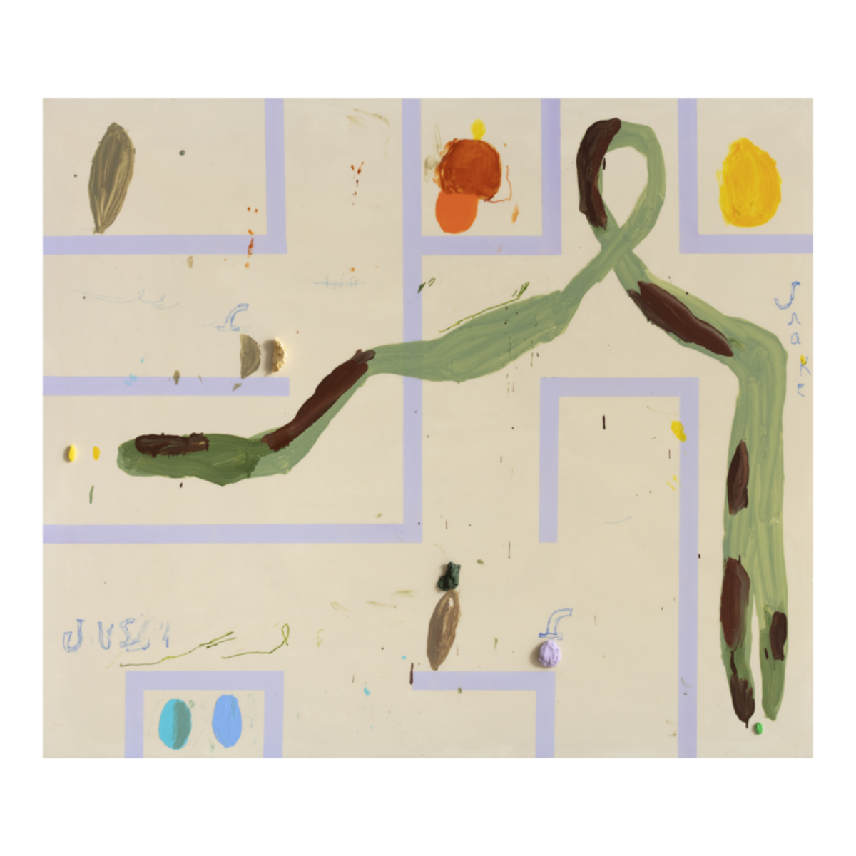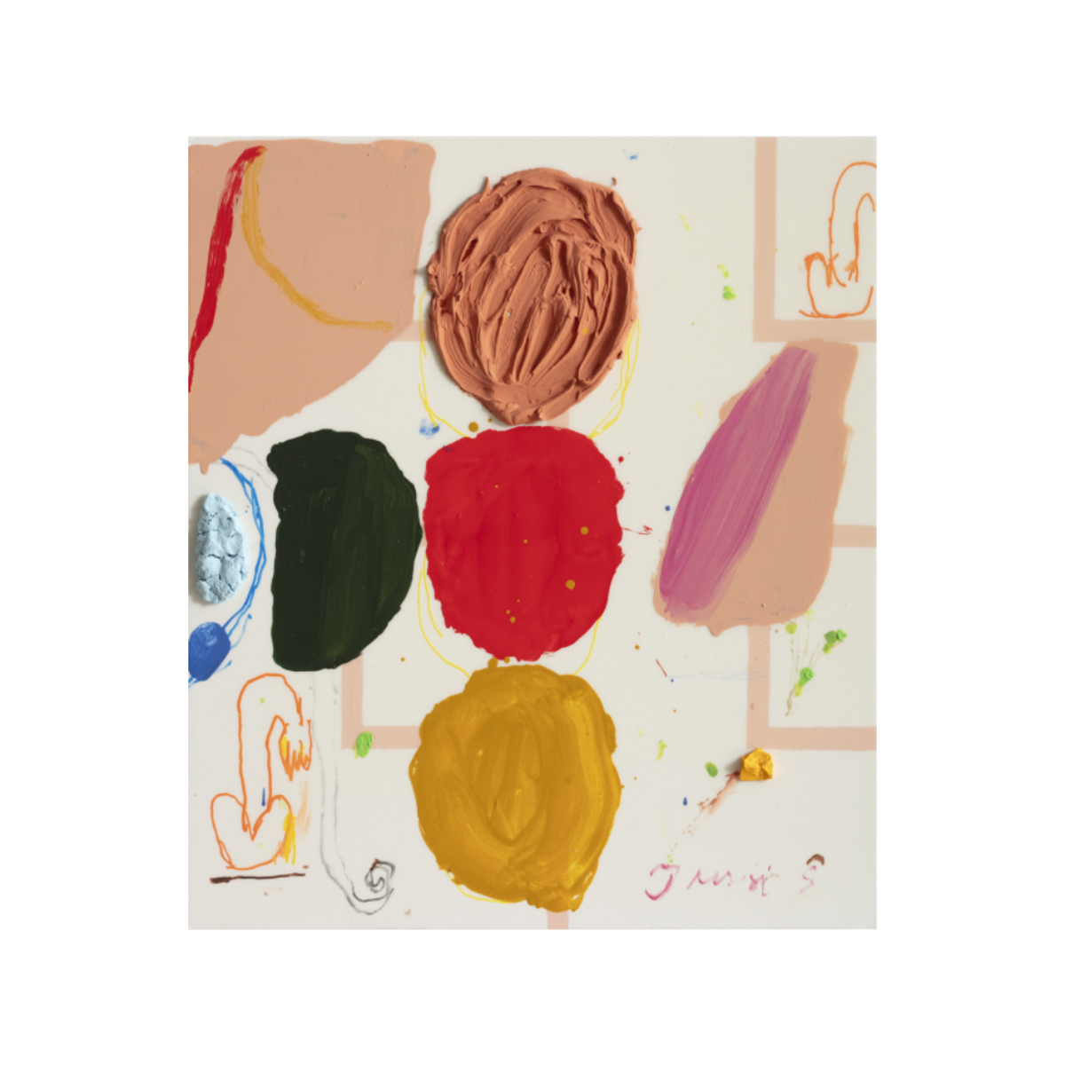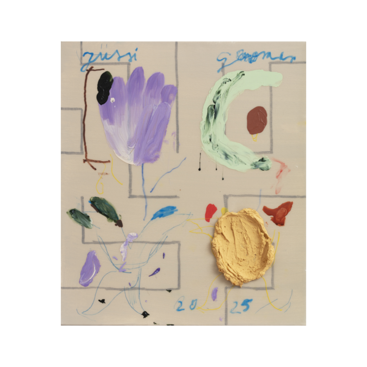 Jussi Goman (b. 1980 in Pudasjärvi, Finland) is a visual artist who lives and works in Riihimäki. Goman is known for his colorful acrylic paintings combining humor, movement, and lightness. The painterly elements of his works and the surprising visual narratives create a rich, multi-layered ensemble. Goman’s oeuvre also reveals a profound interest in art history, which is evident in his ability to reinterpret and playfully break the conventions of painting.