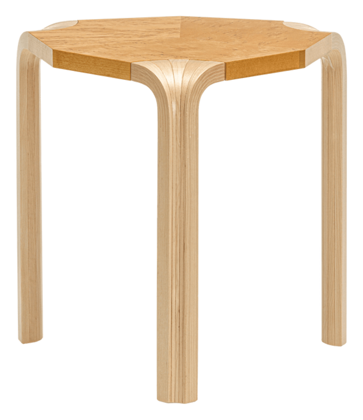 The X-leg marked another step in the evolution of Alvar Aalto's bentwood birch L-leg. Its elegant, fan-shaped construction was introduced in a collection exhibited at Stockholm department store Nordiska Kompaniet in 1954.