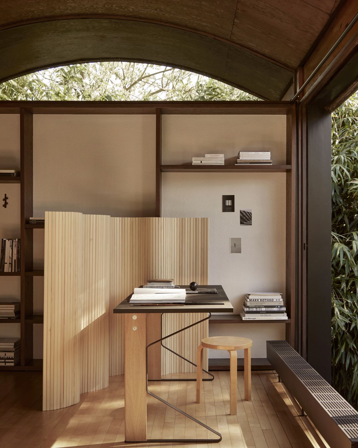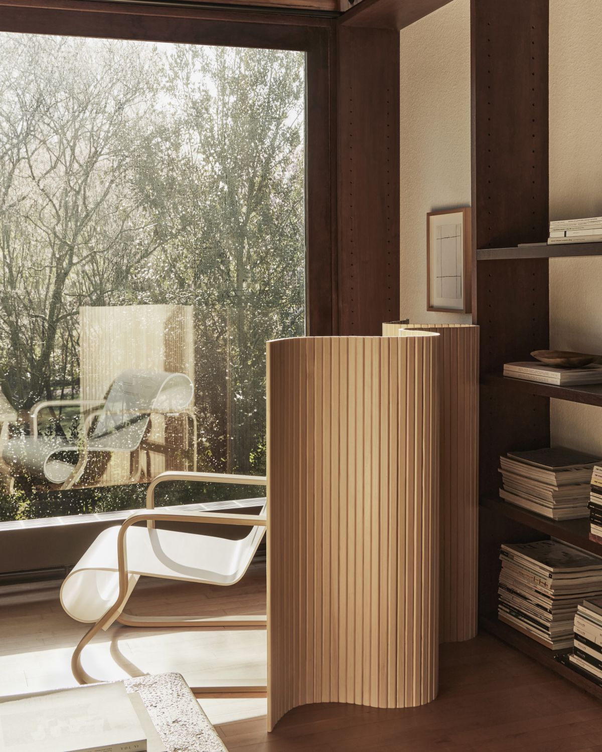 Screen 100 brings Alvar Aalto’s free-flowing, organic form — one of his predominant architectural themes — into living interiors. Now available as a range of four height options, its vertically-aligned pinewood strips provide structure and order while adding natural warmth and organic character to a space.