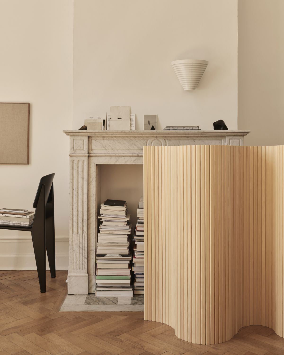 The screen is made in Finland, using Finnish pinewood instead of the birchwood most commonly associated with Aalto furniture. Pine is an abundant species that grows throughout Finland, offering a bold character and developing a rich patina as it ages gracefully over time.