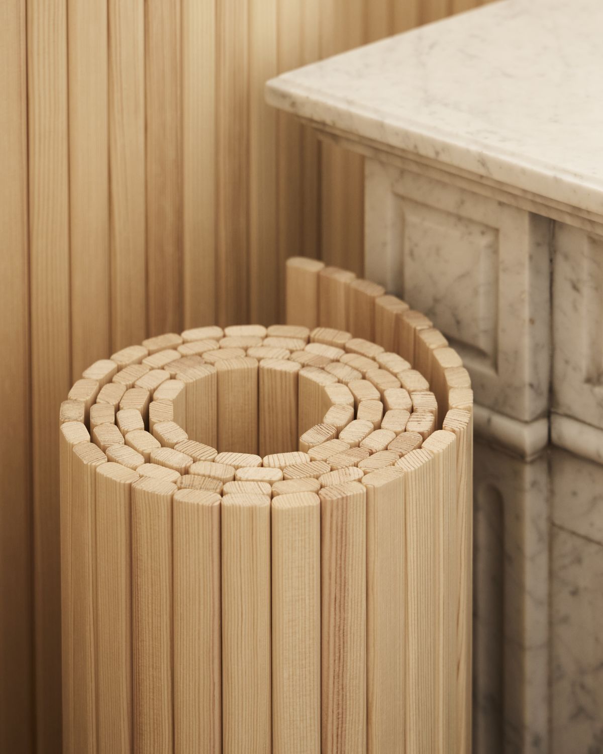 The screen heights of 100 cm, 130 cm and 180 cm return to the collection, supplementing the current 150 cm screen to cater to the varying needs of contemporary interiors. It can be rolled up for storage and rolled out to form gently curving lines that can be shaped according to the needs of the space. Light and well-proportioned, the screen is easy to move around as needed and brings the warmth of wood to any room.