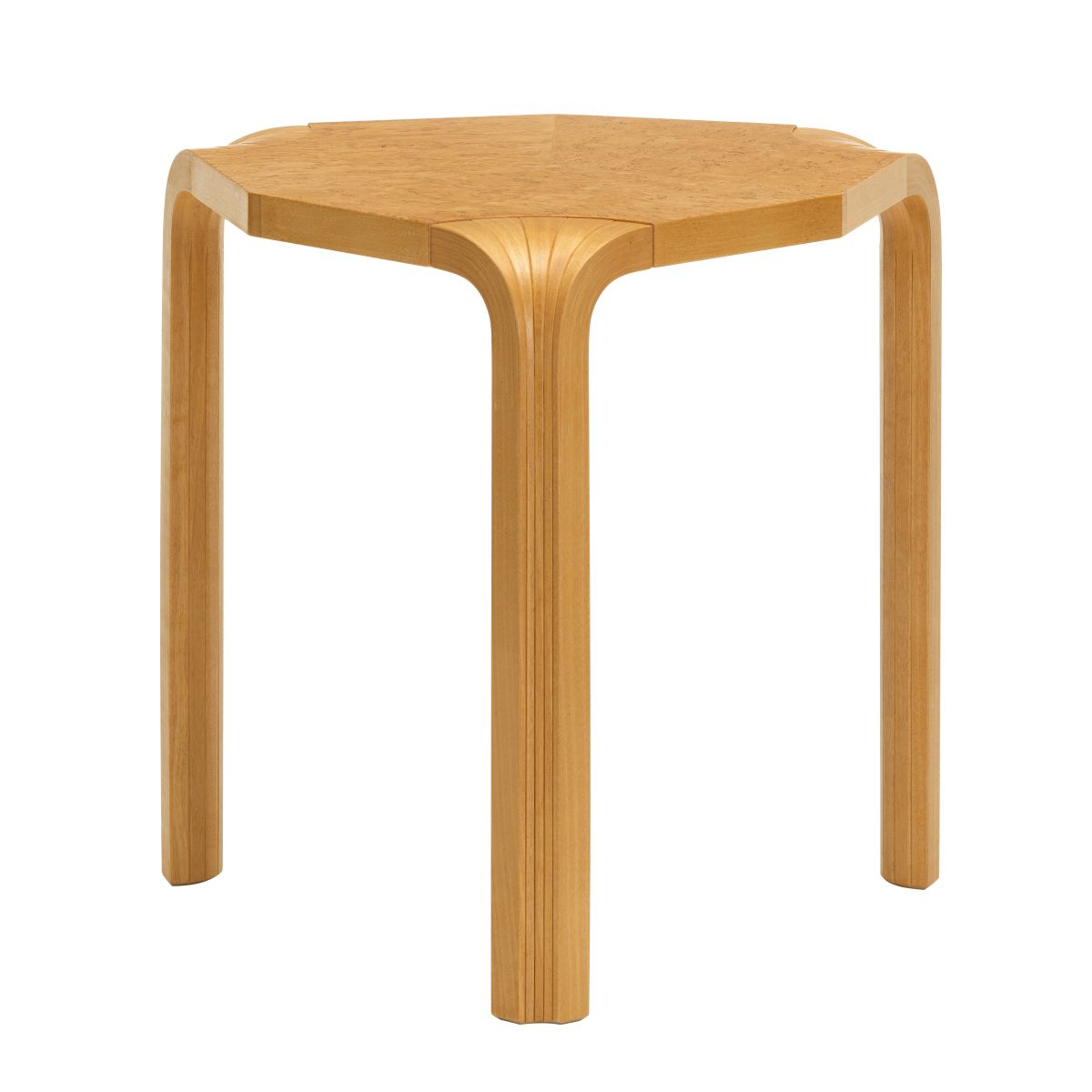 A special limited edition of Stool X602 is released to celebrate 90 years of Artek, showcasing one of Alvar Aalto’s most significant late innovations in furniture, the fan-shaped “X-leg”. The stool’s hexagonal seat top has a “curly birch” veneer which is applied using a marquetry technique. Curly birch is a rare variant of Finnish silver birch in which wavy, irregular rings form a fiery pattern that enhances the stool’s rich aesthetic appeal.