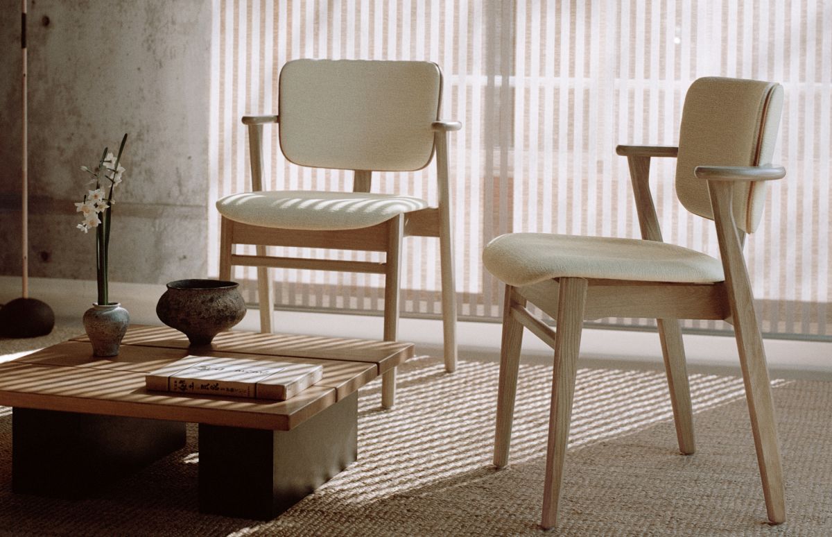 学生寮からダイニングルーム、公共空間から住まいまで── イルマリ・タピオヴァーラが生み出した「ドムス チェア」は、80年もの間、世界中で愛され続けています。特徴的な小さめの肘掛けは、肘置きとしての役割を十分に果たしながらも、自由な動きを妨げず、さらにテーブルに椅子を引き寄せやすいよう考慮されています。機能性と快適さを兼ね備えた温かみのあるデザインは、どんな空間にも自然に溶け込み、心地よさをもたらします。ナチュラルオークまたはバーチ材をベースとした木目仕様と張地仕様があり、すべてフィンランドで生産されています。