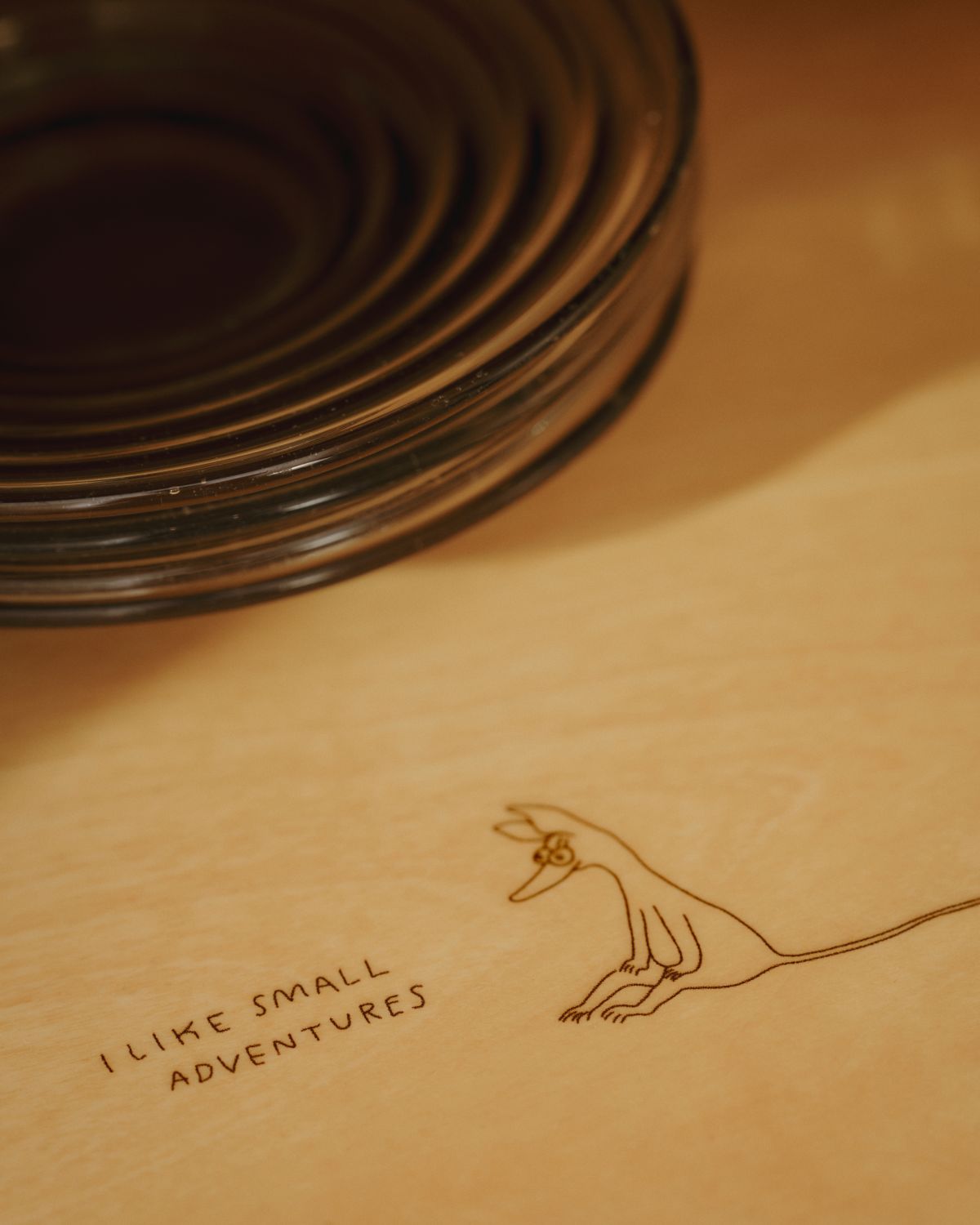 トーベ・ヤンソンは、このようなドローイングをさまざまな場所に残しています。その行為からは、彼女のおおらかで遊び心のある性格がうかがえます。これらの即興的な遊び心が、「アルテック+ムーミン」シリーズの着想源になり、トーベ・ヤンソンの創造性とアアルト夫妻のデザインが融合した家具シリーズが生まれました。